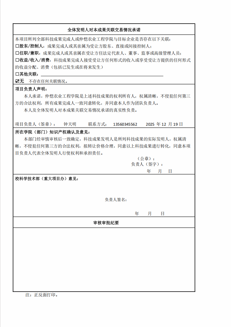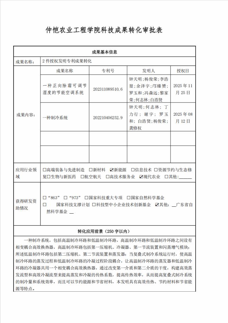 仲恺农业工程学院科技成果转化审批公示