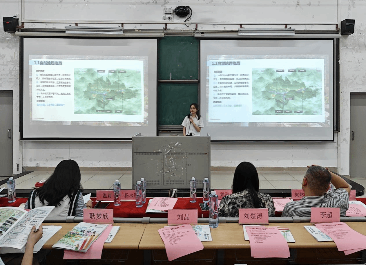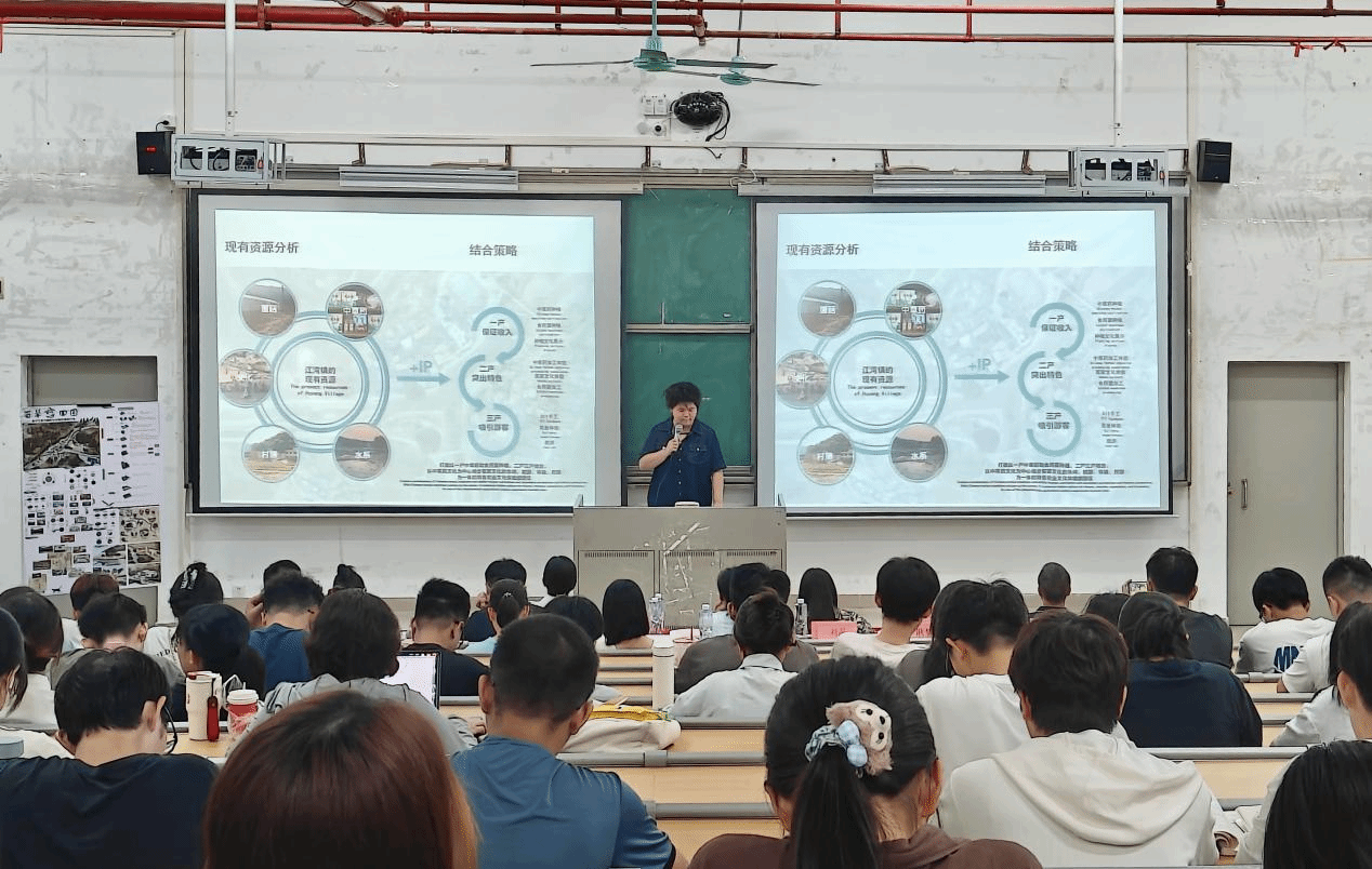 展示环节结束后,温莉老师代表评委组作总结发言。她以“担当、突破、传承、期待”四个关键词分享赛事感悟:赞扬同学们扎根乡土、服务社会的“担当”精神;肯定本届作品在成果丰富度(涵盖报告、展板、视频)、质量深度(融合GIS空间分析、灾害风险评估、文旅策划等前沿方法,兼具落地潜力)及议题广度(超越空间设计,深入运营机制、文化传承等)上实现的显著“突破”;欣喜于高低年级协作“传承”的优良学风;并“期待”师生将“真题真做”精神延续,深化“以赛促学、以赛促教”模式,推动教学与乡镇发展需求更紧密结合,助力优秀方案落地转化,为乡村振兴注入青春动能。