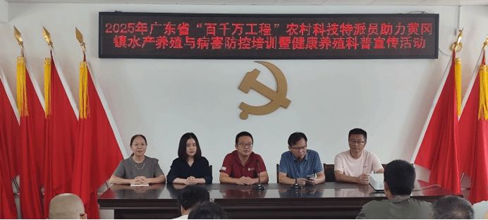 9月17日上午,2025年广东省“百千万工程”农村科技特派员在潮州市饶平县黄冈镇碧洲村举办水产养殖与病害防控培训暨健康养殖科普宣传活动,助力黄冈镇水产养殖发展。这场聚焦鱼虾养殖的实用科普培训,由我校和汕头大学、广东通威饲料有限公司及黄冈镇驻镇帮扶工作队联合主办,为当地养殖户送上“科技及时雨”。