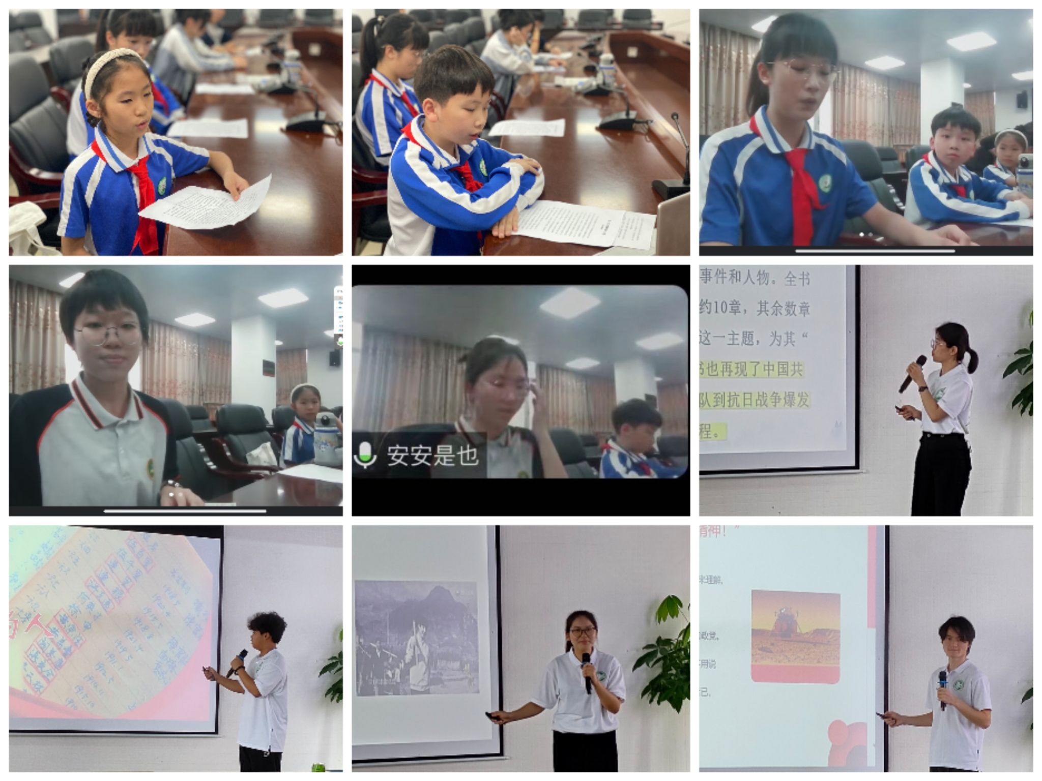中学组徐同学着重分享了《红岩》中许云峰、江姐的性格特点,展现了坚贞不屈、向往光明的共产党人的英雄形象。黄同学展示了《保卫延安》中周大勇、彭德怀的革命作风,诠释了人民军队最终胜利的底层逻辑。