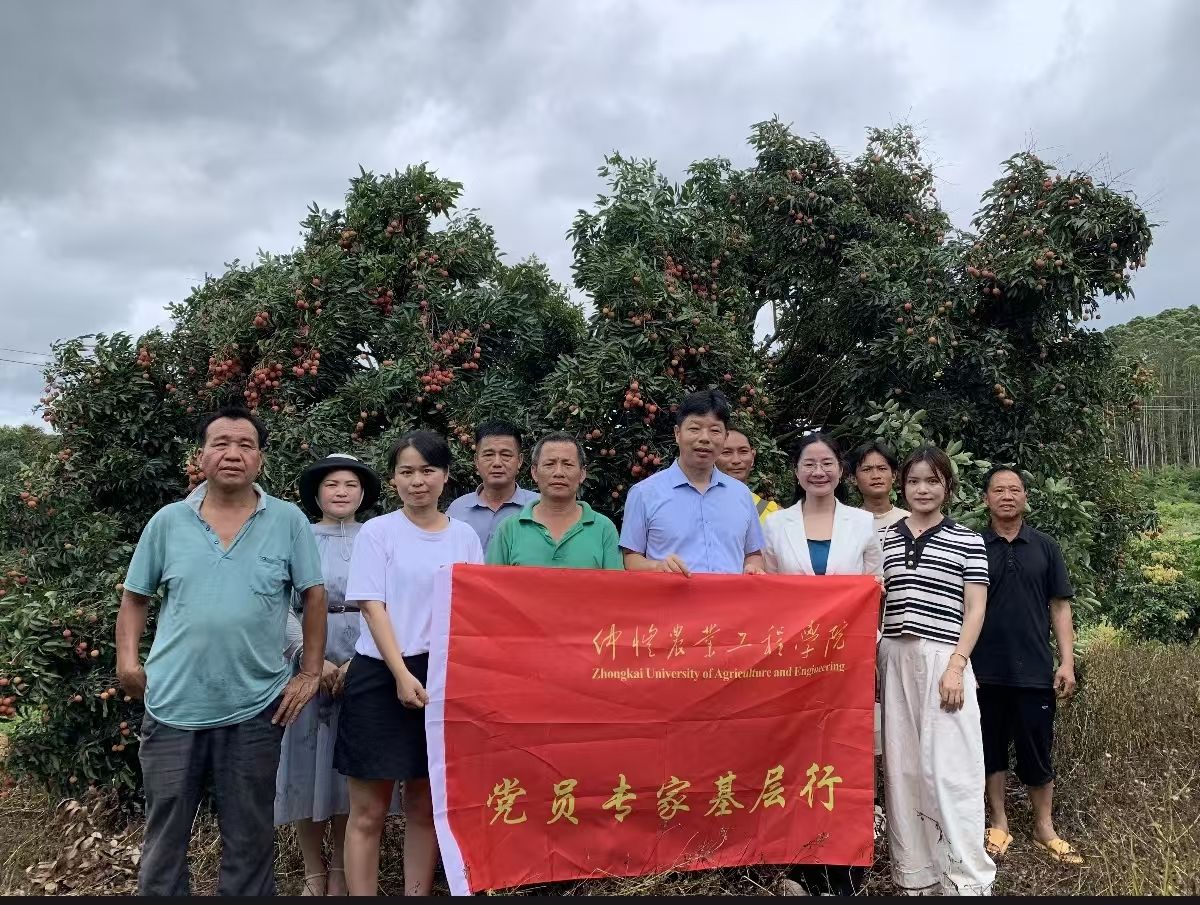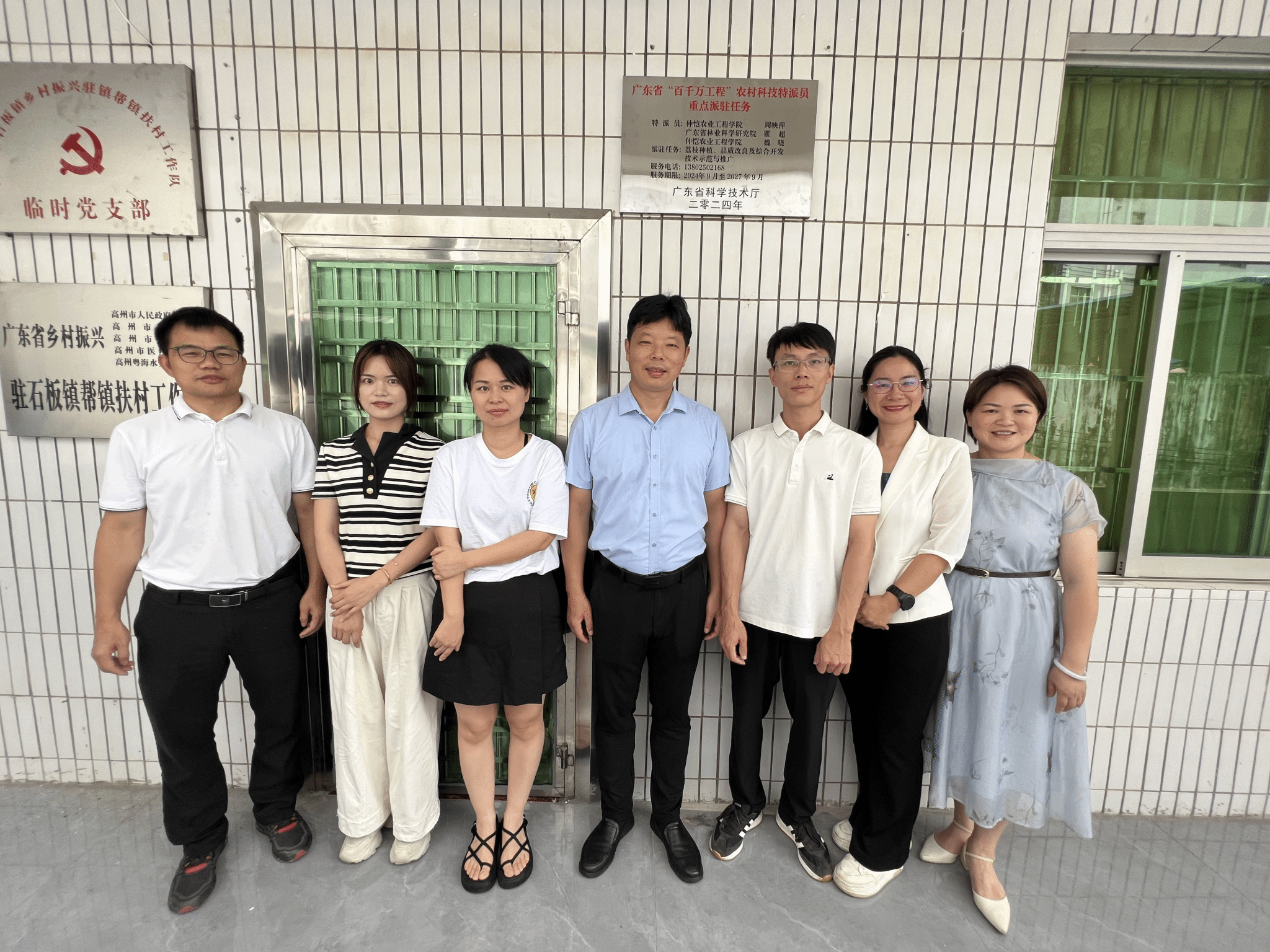 为应对台风“蝴蝶”登陆,保障荔枝稳产增收,6月12日至14日,由学校驻高州市石板镇科技特派员团队负责人周映萍及成员魏晓、特邀水肥一体化技术专家涂攀峰及广东省林业科学研究院易君文博士组成的科技服务团队,深入高州市石板镇开展荔枝种植管理及采后保鲜技术指导。石板镇党委副书记彭浪,党委副书记(挂职)、驻镇工作队队长练海,党委委员陈建丽等领导同志共同参与了调研。