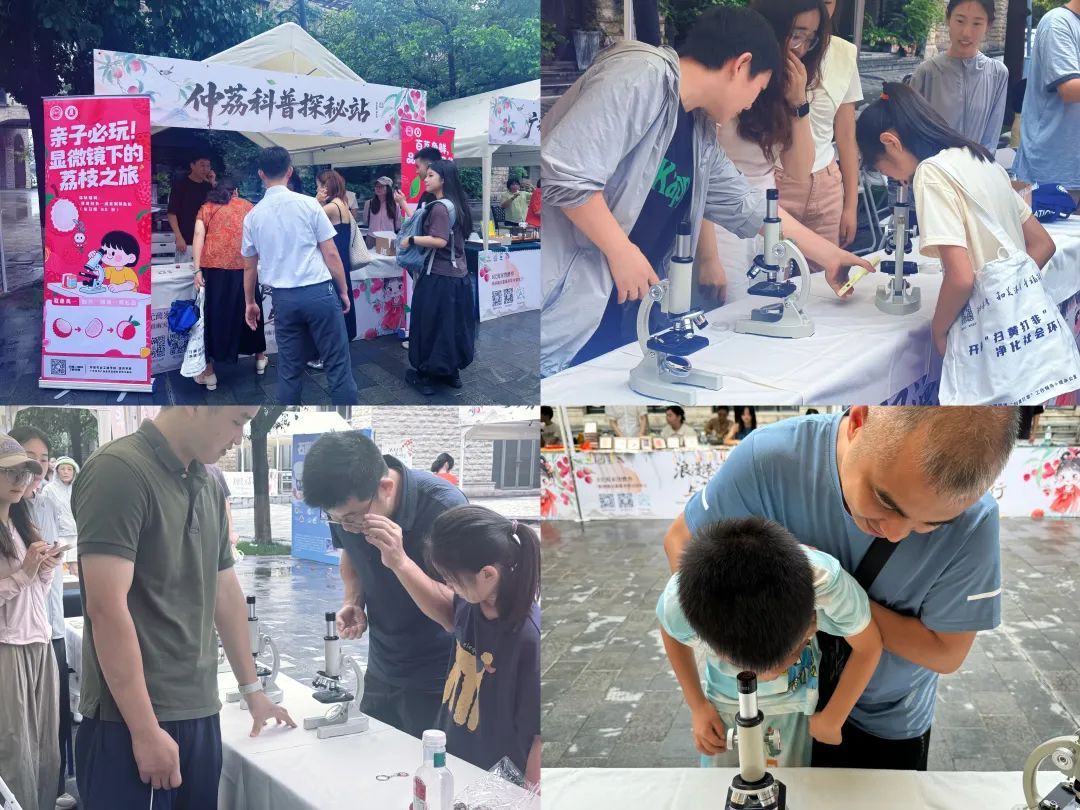 在“仲荔科普探秘站”现场,参与活动的师生通过高倍显微镜向市民展示了荔枝表皮的蜂窝状龟裂片结构及果肉海绵状组织,公众更加直观地理解了 “为何荔枝果皮能抵御虫害”“果肉如何储存水分” 等生物学原理,这种从 “田间” 到 “实验室” 的知识转化,不仅生动揭示了荔枝从表皮防护到果肉储水的生物智慧,也是科技赋能产业的底层逻辑。同时,经贸学院院长方凯表示:“我们不仅要展现荔枝的‘外在美’,更要解码它的‘内在逻辑’。这种从田间到实验室的知识转化,正是科技赋能产业的底层密码。”现场家长李女士感叹道:“第一次知道荔枝壳的纹理藏着天然防水层,这样的科普让孩子明白农业处处是学问。”