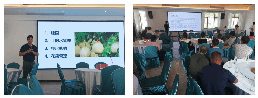 7月5日,农村科技特派员团队在洪冠镇“百千万工程赋能南药暨雪梨产业高质量发展宣传推介会”上举办了一场雪梨水肥管理及高产优质栽培技术培训。来自全镇的种植户们参加了技术培训。技术专家结合洪冠镇的气候特点、土壤条件以及多年的实践经验,用通俗易懂的语言、生动形象的案例,将复杂的种植技术知识深入浅出地传授给种植户们。培训过程中,针对种植户们的疑问,专家逐一耐心解答,现场解决了种植户们在实际生产中遇到的诸多困惑。