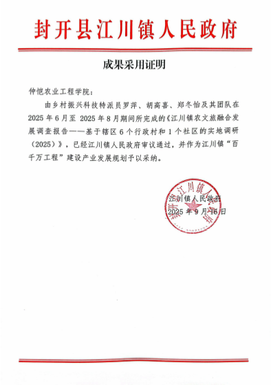 为贯彻落实广东“百县千镇万村高质量发展工程”的工作部署,助力乡村全面振兴与农文旅融合发展,管理学院“菠萝兴农,甜享未来”突击队在科技特派员罗萍、胡高喜和郑冬怡的带领下,于6月26日至7月4日深入肇庆市封开县江川镇开展调研。团队聚焦当地产业优势与特色景观,覆盖辖区6个行政村及1个社区,撰写了《江川镇农文旅融合发展调查报告--基于辖区6个行政村和1个社区的实地调研(2025)》,该调研报告获江川镇人民政府审议通过,并作为江川镇“百千万工程”建设产业发展规划予以采纳。
