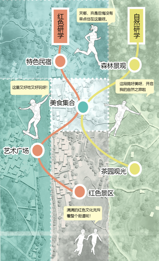 团队以“醉美山水 多彩良田”为核心理念,深度走访调研包含南方人民银行纪念馆等红色文化旧址、独山王爷洞风景区等民俗历史资源、生态林等自然保护区及村庄现状,通过文旅游径整合良田乡红色历史资源与绿色自然景观,规划未来乡村新图景。