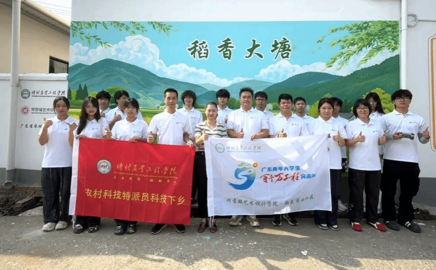 为深入实施乡村振兴战略,引领青年大学生凝心聚力助力“百千万工程”高质量发展。7月10日至17日,何香凝艺术设计学院环境设计许树贤副教授、视觉传达翁羽生老师,联合园艺园林学院特聘副教授罗红辉老师,并特邀创业校友黄兴业参与指导,带领学院16名大学生组成的“绿芒万丈”百千万工程青年突击队,赴韶关市曲江区大塘镇,成功开展农村科技特派员技术服务和大学生社会实践,以青春智慧与汗水赋能乡村振兴。