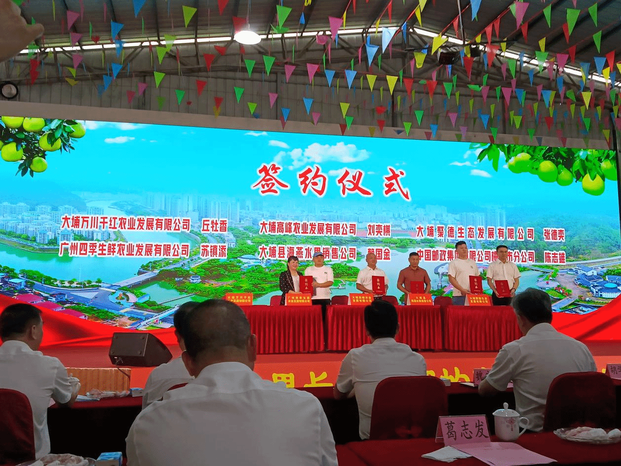 活动现场以 “产销对接、品牌赋能” 为核心,亮点纷呈。在产销链路搭建上,6 组蜜柚企业与经销商完成签约,覆盖种植、加工、物流全环节,通过 “企业+经销商”“企业+物流” 的合作模式,为大埔蜜柚打通稳定外销通道,有望进一步扩大本年度蜜柚外销规模。品牌传播层面,“媒体+梅州柚”暨“网络强村” 赋能 “百千万工程” 农产品市场体系建设启动仪式同步举行,该行动将整合各级主流媒体与网络自媒体力量,按 “预热-集中-深化” 三阶段节奏,构建 “线上 + 线下+外部” 三位一体传播格局:线上打造全市全媒体宣传矩阵,线下抢占机场、高铁站等公共空间广告资源,外部邀请市外媒体深度参与;同时创新 “媒体 + 电商” 联营、“社区 + 团购” 直达、“农文旅 + 柚产业” 融合等营销模式,推动梅州柚品牌增值、农民增收,为乡村全面振兴开辟新路径。