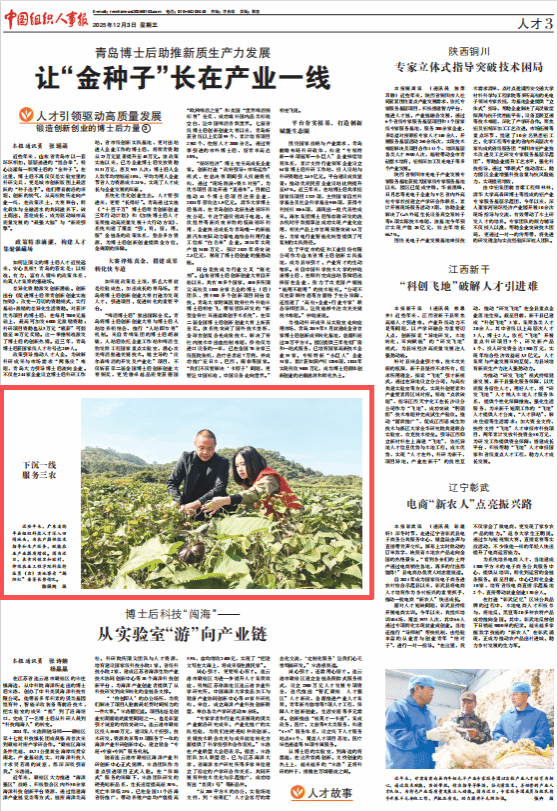 《中国组织人事报》12月3日刊发题为《下沉一线 服务三农》的图片新闻,报道饶平县组织科技人才为农户提供技术指导和生产服务的经验做法。