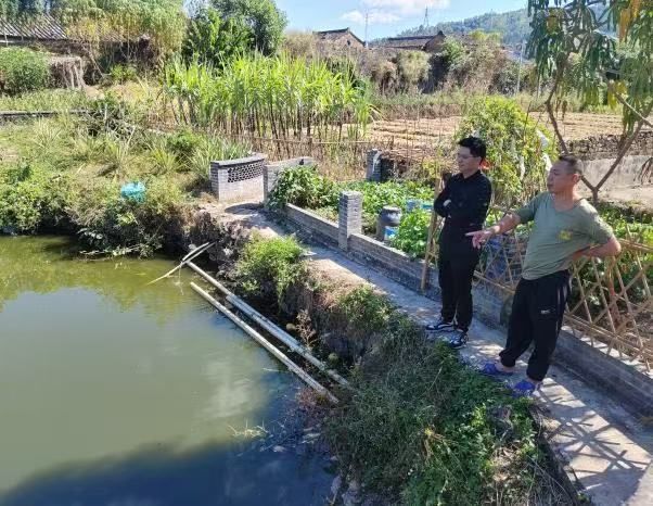 特派员对鱼塘进行实地考察