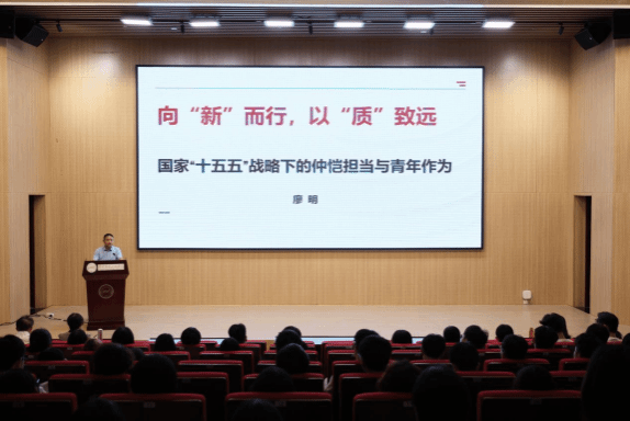 为深入学习贯彻国家“十五五”规划战略部署,引领全校师生明晰时代方位、扛起使命担当,4月10日上午,校长廖明以“向‘新’而行,以‘质’致远,国家‘十五五’战略下的仲恺担当与青年作为”为主题,在白云校区德新楼学术报告厅为动物科技学院、资源与环境学院和城乡建设学院的同学们讲授“思政第一课”。课程内容立足时代发展大局,结合学校办学定位与特色,全面解读“十五五”规划核心要义,系统阐释学校践行规划的实践路径,深情寄语广大仲恺学子在新时代新征程中奋勇争先、建功立业,整场思政课思想深刻、内涵丰富、催人奋进。